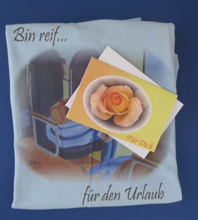 Die Werbung für meine Stofftasche muss noch etwas verfeinert werden, allerdings ist die Werbung für mein Samstagmorgen-T-Shirt ok.