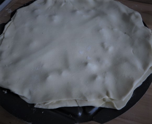 Si vous n'avez pas de moule, coupez la pate feeilletee en grand carres et mettez une cuillere a the de la creme sur le caree. Formes ensuite un triangle autour de la creme, afin de la couvrir.